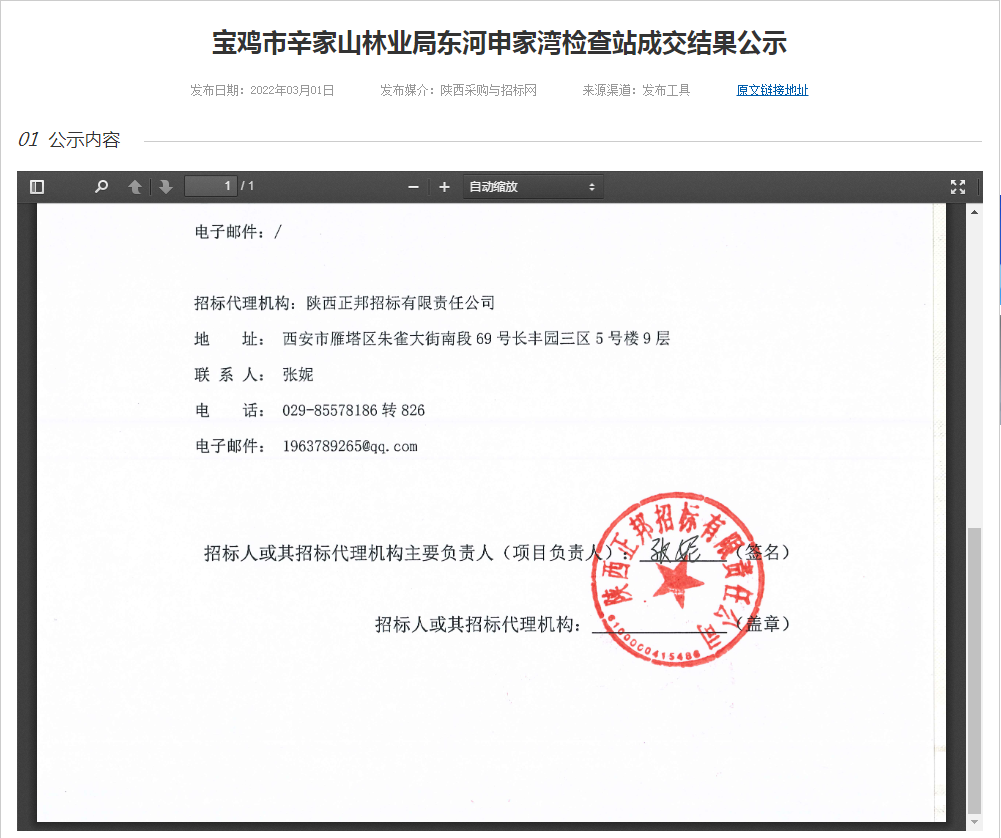 寶雞市辛家山林業(yè)局東河申家灣檢查站成交結(jié)果公示