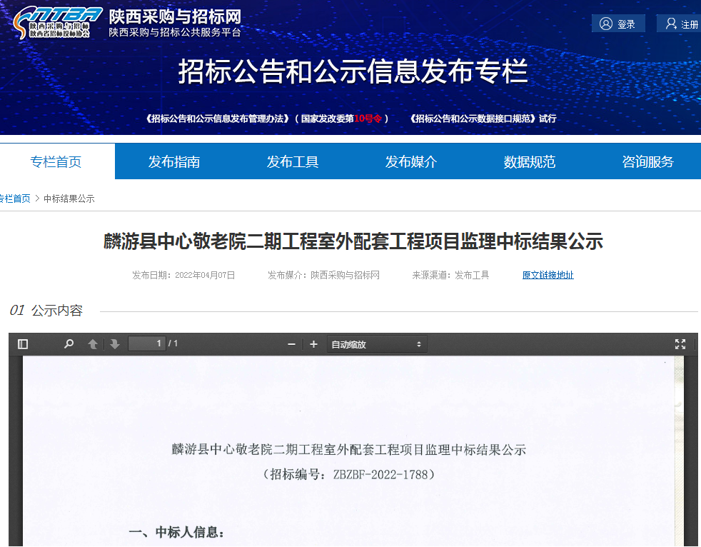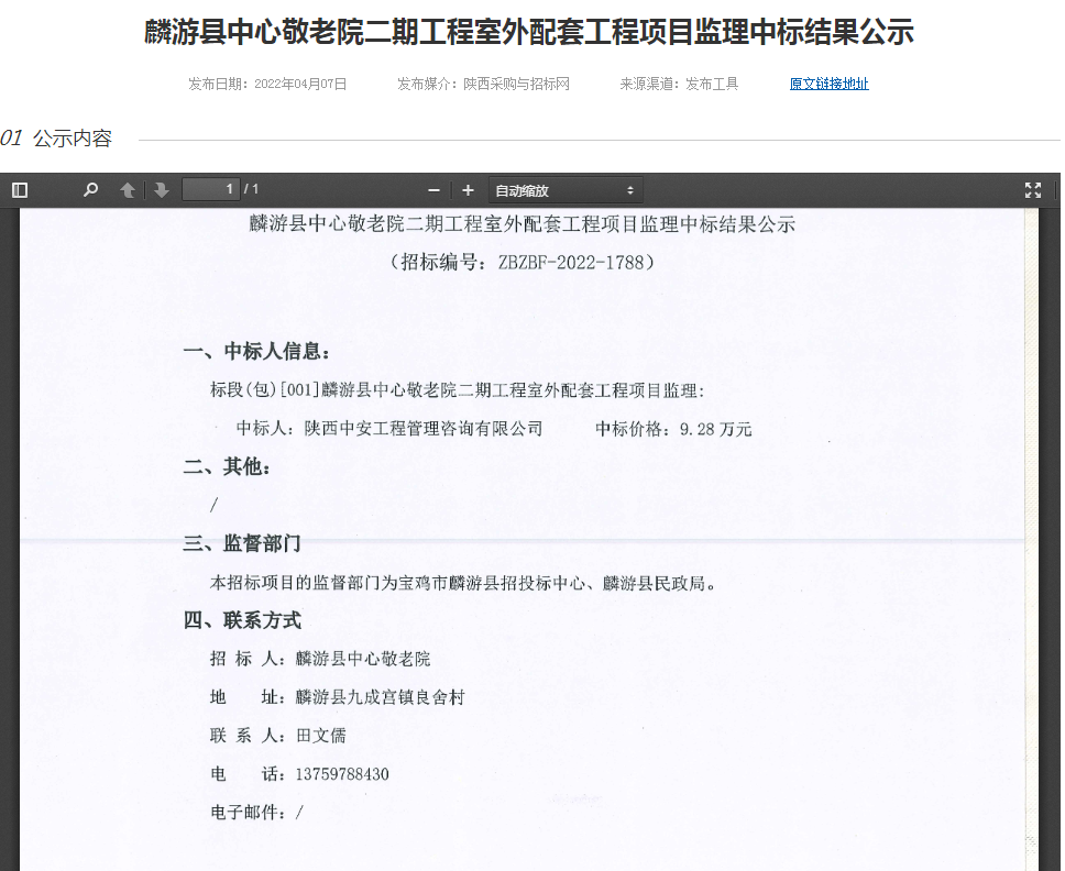 麟游縣中心敬老院二期工程室外配套工程項目監(jiān)理中標結(jié)果公示